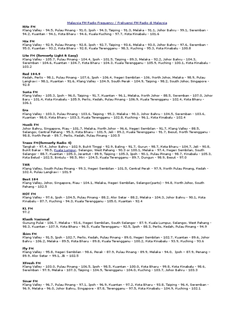 Senarai Frekuensi Stesen Radio Di Malaysia Azhan Co